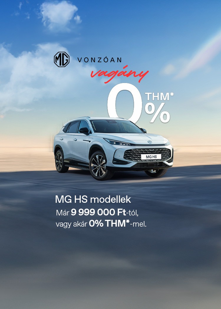 Most minden MG HS modell kedvező, akár 0%-os THM*-mel érhető el! Válaszd a számodra legmegfelelőbb finanszírozási konstrukciót, és vidd haza könnyedén a számodra ideális MG HS-t.